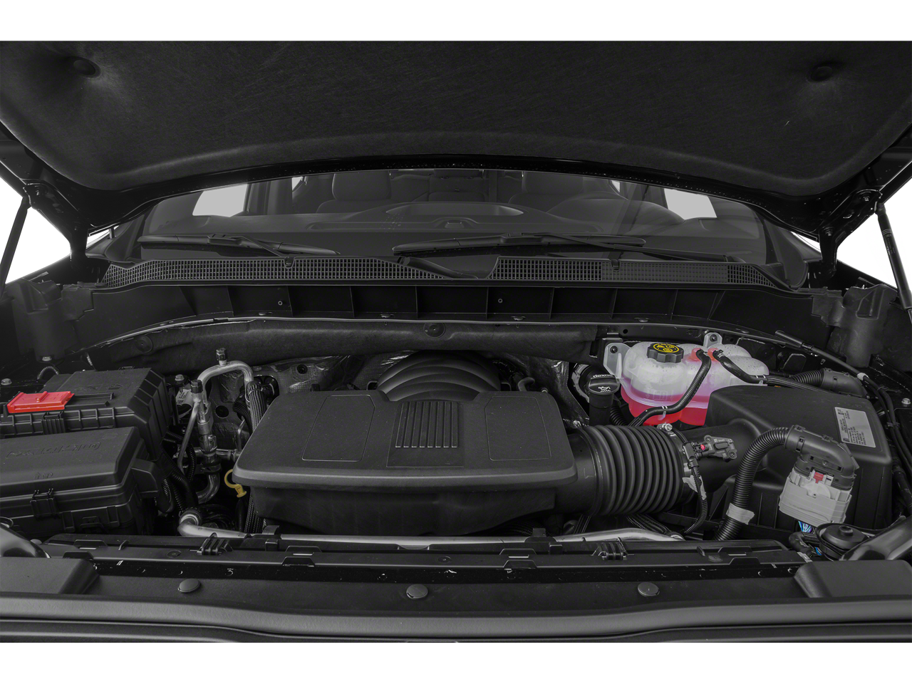 ENGINE, 6.2L ECOTEC3 V8 (420 hp [313 kW] @ 5600 rpm, 460 lb-ft of torque [624 Nm] @ 4100 rpm); featuring all-new Dynamic Fuel Management that enables the engine to operate in 17 different patterns between 2 and 8 cylinders, depending on demand, to optimize power delivery and efficiency, CONVENIENCE PACKAGE II includes (UG1) Universal Home Remote, (A48) rear sliding power window, (KI4) 120-volt power outlet, (KC9) 120-volt bed-mounted power outlet, (IOS) Chevrolet Infotainment System with 8" diagonal color touch-screen with (MCR) USB ports, SiriusXM with 360L, (U2L) HD Radio and (UVB) HD Rear Vision Camera Includes (UQA) Bose Premium Sound System. Certain 21MY vehicles will include (RG0) Not Equipped with HD Radio, which removes (U2L) HD Radio. See dealer for details.), SAFETY PACKAGE includes (UD5) Front and Rear Park Assist, (UKC) Lane Change Alert with Side Blind Zone Alert and (UFG) Rear Cross Traffic Alert (Includes Perimeter Lighting. BED PROTECTION PACKAGE includes (B1J) wheel house liners and (CGN) Chevytec spray-on bedliner, ADVANCED TRAILERING PACKAGE includes (PZ8) Hitch Guidance with Hitch View, (U1D) Advanced Trailering System and (JL1) trailer brake controller, AUDIO SYSTEM, CHEVROLET INFOTAINMENT 3 PLUS SYSTEM 8" diagonal HD color touchscreen, AM/FM stereo, Bluetooth® audio streaming for 2 active devices, wireless Apple CarPlay® and Android Auto® capable, voice recognition, in-vehicle apps, cloud connected personalization for select infotainment and vehicle settings. Subscription required for enhanced and connected services after trial period. TRANSMISSION, 10-SPEED AUTOMATIC, ELECTRONICALLY CONTROLLED with overdrive and tow/haul mode. Includes Cruise Grade Braking and Powertrain Grade Braking (STD) (Most vehicles built on or after 6-7-2021 with a V8 engine and (MQB) 10-speed automatic transmission will have (NSS) Not Equipped with Automatic Stop/Start, which removes Automatic Stop/Start and its content.), SEAT, UP-LEVEL REAR WITH STORAGE PACKAGE 60/40 folding bench for Crew Cab models, includes full-length bench seat, seatback storage on left and right side, center fold out armrest with 2 cupholders, full cab width underseat storage, (includes child seat top tether anchor). Chevrolet LT Trail Boss with Summit White exterior and Jet Black interior features a 8 Cylinder Engine with 420 HP at 5600 RPM*.