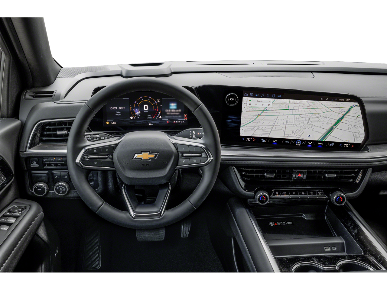 COMFORT PACKAGE includes (A45) memory settings, (UQS) Bose 10-speaker Surround with CenterPoint, (DXR) outside heated power-adjustable, power-folding, body-color mirrors with driver-side auto-dimming and integrated turn signal indicators, (KI3) heated steering wheel, (KA6) second row outboard heated seats, (ATT) second row power 60/40 split-folding bench seats, (AS8) third row power 60/40 split-folding bench seats, (TGE) LED animated headlamps and (TAU) LED animated tail lamps (Also includes (WPL) Luxury Package content. SUNROOF, POWER PANORAMIC, DUAL-PANE, TILT-SLIDING with express-open and close and power sunshade, WHEELS, 20" X 9" (50.8 CM X 22.9 CM) MACHINED ALUMINUM WIT CHARCOAL POCKETS, SEATS, SECOND ROW BUCKET, POWER RELEASE, ENGINE, 5.3L ECOTEC3 V8 with Dynamic Fuel Management, Direct Injection and Variable Valve Timing, includes aluminum block construction (355 hp [265 kW] @ 5600 rpm, 383 lb-ft of torque [518 Nm] @ 4100 rpm) (STD), TRANSMISSION, 10-SPEED AUTOMATIC electronically controlled with overdrive, includes Traction Select System including tow/haul (STD), AUDIO SYSTEM, 17.7" DIAGONAL ADVANCED COLOR LCD DISPLAY with Google built-in compatibility (select service plan required, terms and limitations apply), including navigation capability, connected apps, personalized profiles for each driver's settings, Natural Voice Recognition and Phone Integration (STD), LUXURY PACKAGE includes (DD8) Inside rearview auto-dimming mirror, (UG1) Universal Home Remote and (T40) LED front fog lamps, ADVANCED TRAILERING PACKAGE includes (UKW) Blind Zone Steering Assist with Trailering, (PZ8) Hitch View and (UET) Smart Trailer Integration Indicator. Chevrolet LT with Dark Ash Metallic exterior and Jet Black interior features a 8 Cylinder Engine with 355 HP at 5600 RPM*. Autocheck 1-Owner Spotless